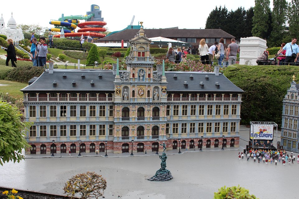 Mini-Europe - Belgien - Rathaus in Antwerpen mit dem davor stehenden Brabobrunnen