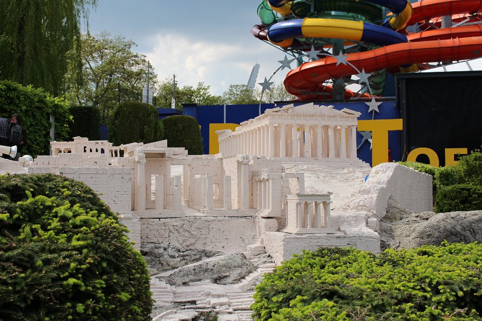 Mini-Europe - Deutschland - Brandenburger Tor in Berlin mit Mauer und Holstentor in Lübeck