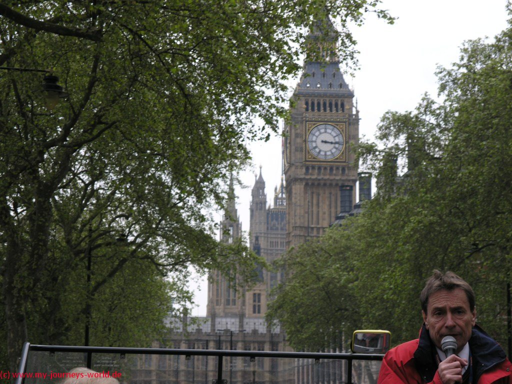 Mit dem Hop-on Hop-Off-Bus (Doppeldecker!) durch London ist ein Erlebnis. Neben diversen touristischen Infos bekommt man auch den britischen Humor gelegentlich mit.